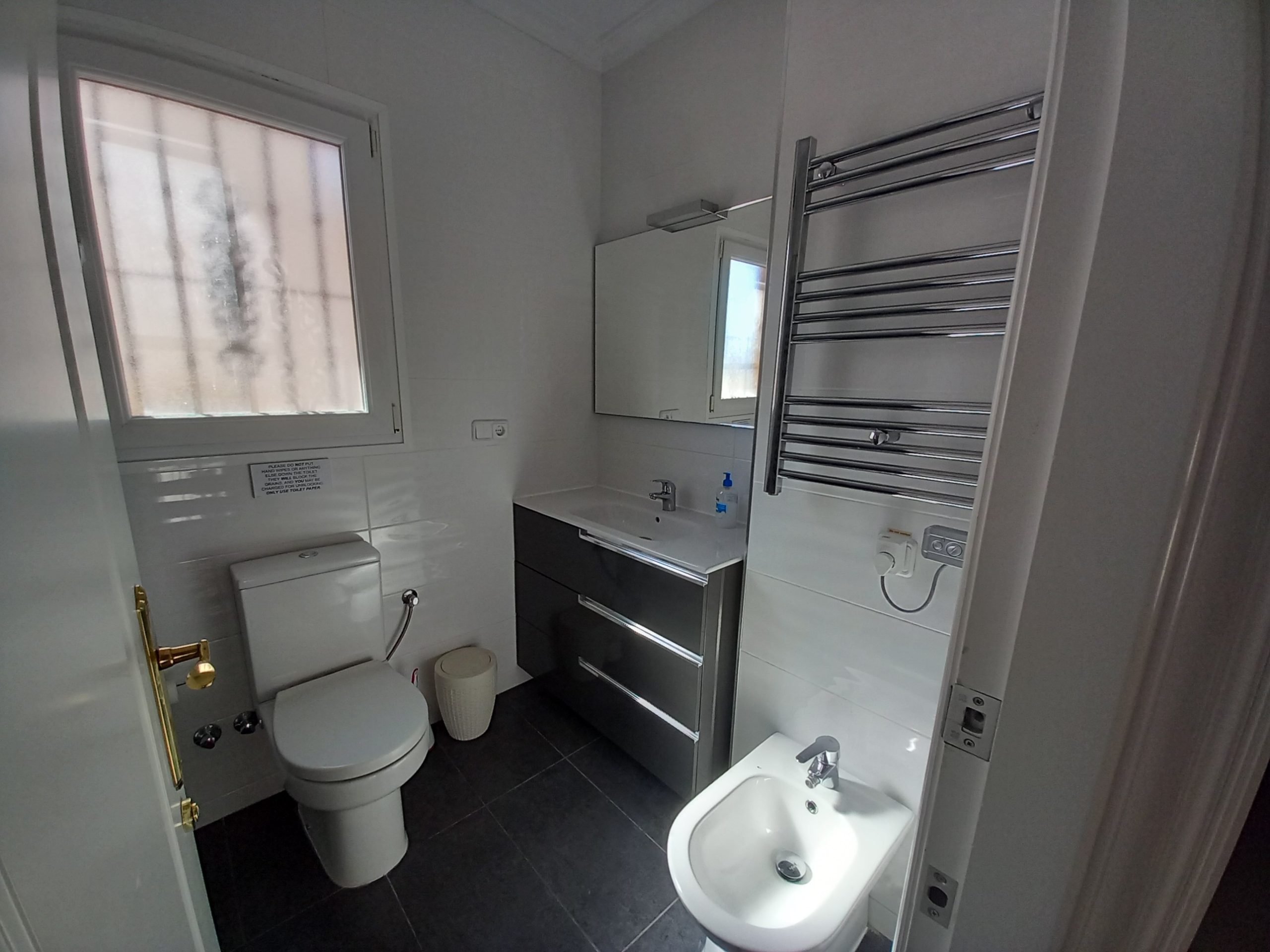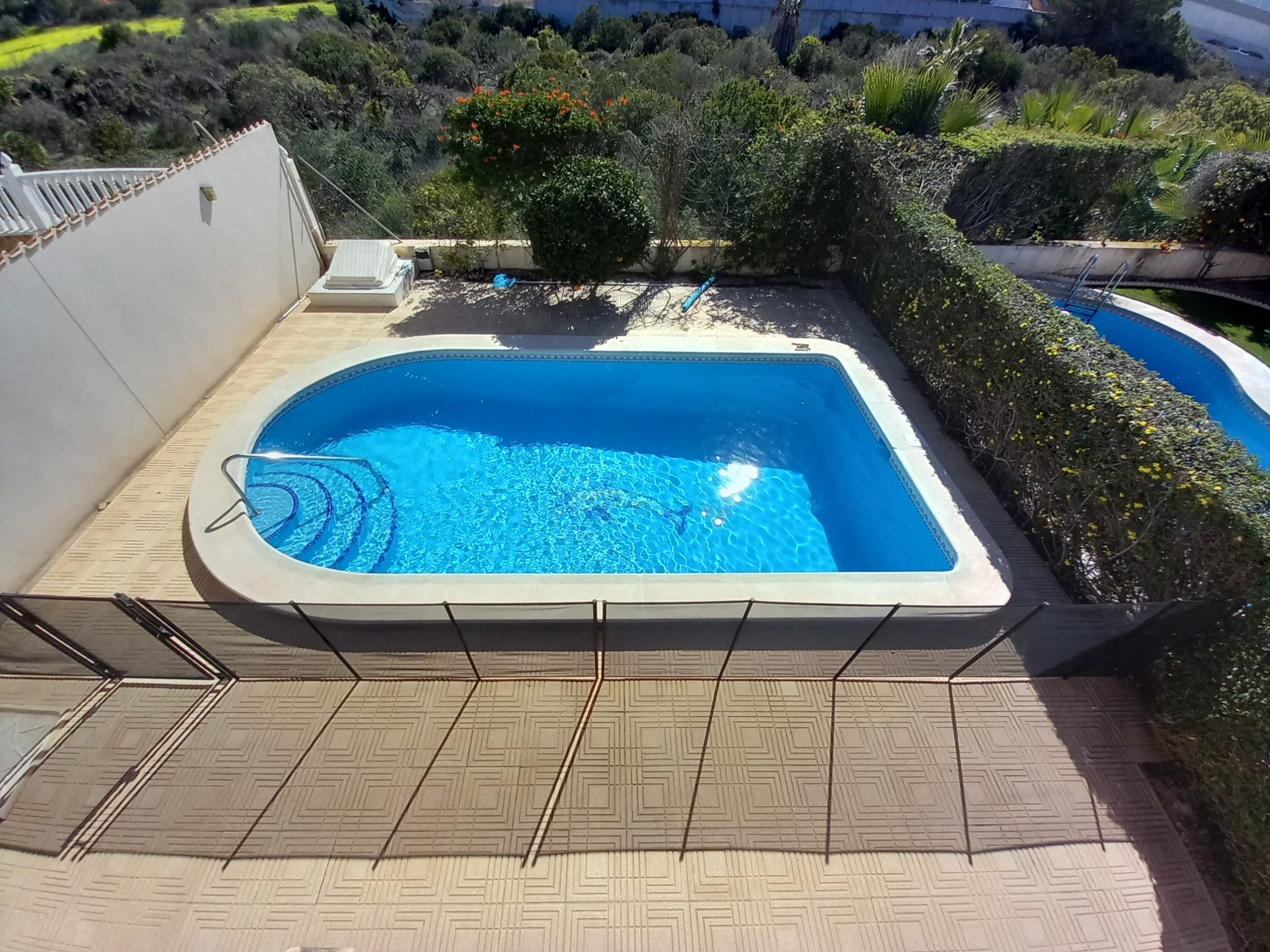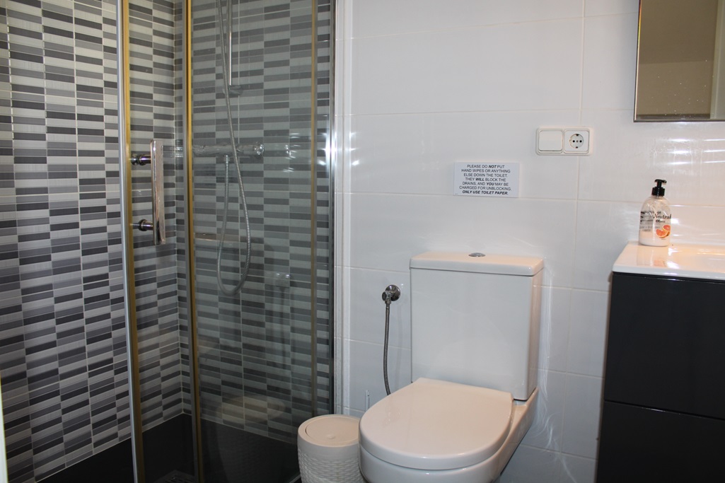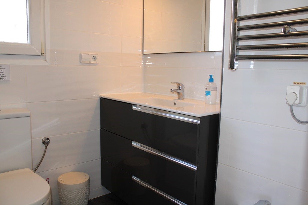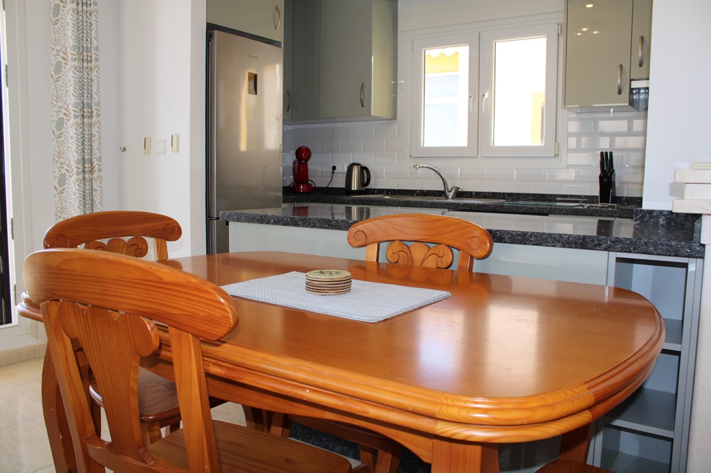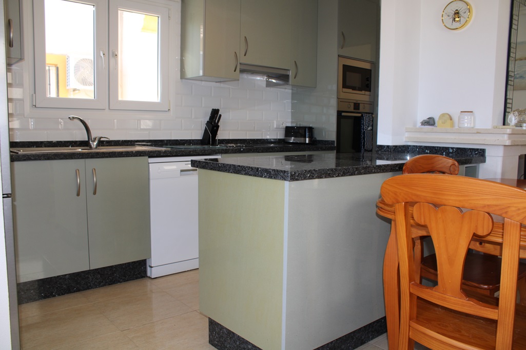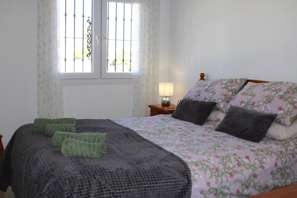 The lounge with air con has an American style open plan kitchen and a gas fire for the colder months. Shops, bars, banks, and restaurants all within a 12 minute walk. Grills on all doors and windows will keep you safe. Gated community to ensure it is kept private and for exclusive use.